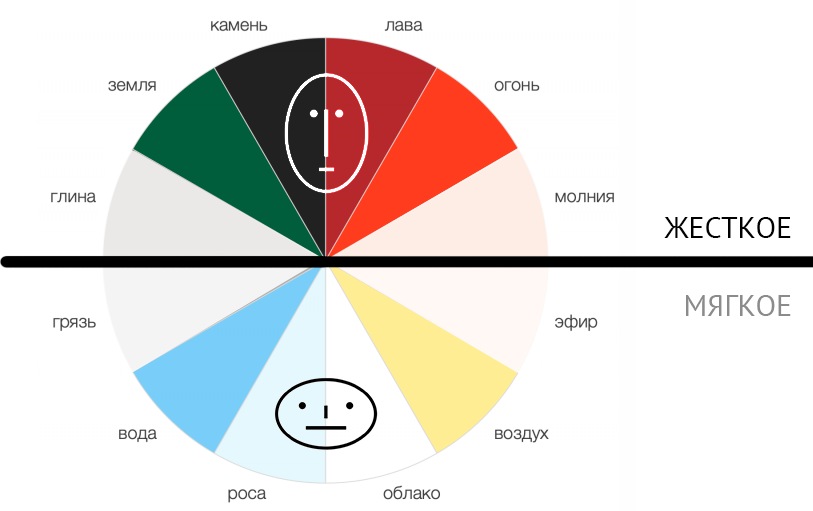 Но! Соотношение глаз и носа получаются на границе, ни туда, ни сюда. Нельзя однозначно сказать Инь это или Ян. И это нормально, потому что у Эволюции есть 4 пограничных типа, которые как раз ни туда, ни сюда. Есть из чего выбрать. Так что на выбор у нас остаются Глина, Грязь, Эфир и Молния.